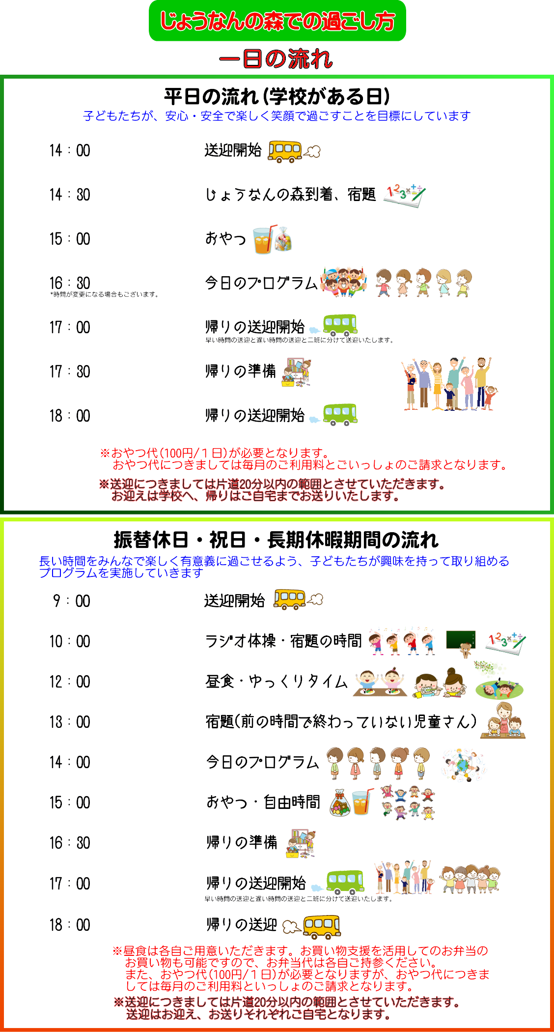 ※気象の状況や災害、また様々な情勢により開所できない場合もございます。